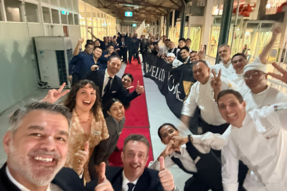 The evening began at Chandon, where guests were welcomed by the ship’s Senior Officers before enjoying pre-dinner festivities in an elegant vineyard setting. A curated selection of canapés included Shark Bay scallops from Western Australia, duck and mushroom croquettes, Wagyu beef skewers with yuzu ponzu sauce, beetroot and pistachio tartlets, and prawn rolls.